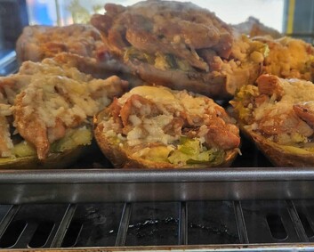 Jacket SpudsBig, hearty jacket potatoes loaded with flavour and love. Each one’s piled high with fillings like cheesy BBQ chicken, savoury mince, or creamy slaw — comfort food at its finest. Crispy on the outside, soft and buttery inside, these spuds are the kind of meal that makes you smile from the first bite to the last.
