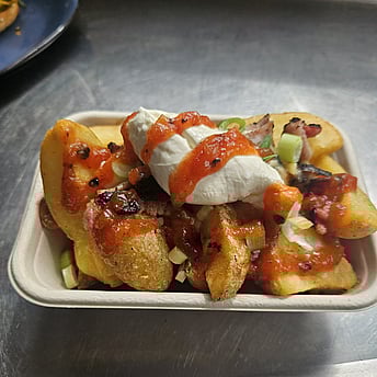Jacket SpudsBig, hearty jacket potatoes loaded with flavour and love. Each one’s piled high with fillings like cheesy BBQ chicken, savoury mince, or creamy slaw — comfort food at its finest. Crispy on the outside, soft and buttery inside, these spuds are the kind of meal that makes you smile from the first bite to the last.